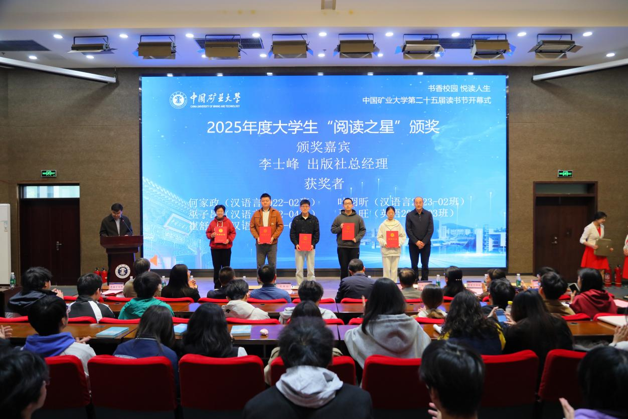 图书馆馆长王新宇介绍了本届读书节的活动安排。随后,校团委书记程婷婷、出版社总经理李士峰为获评“2025年度大学生阅读之星”的10名同学颁奖。力学与土木工程学院张志镇老师和人文与艺术学院巫子昂同学作为师生代表,分别做了读书心得的分享。