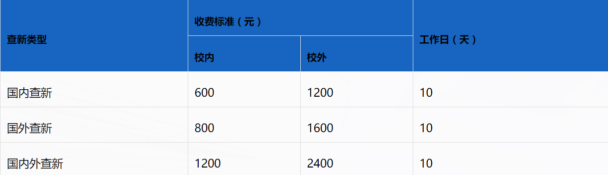 2.以上费用仅限于2个查新点以内。每增加一个查新点加收30%基本查新费用。